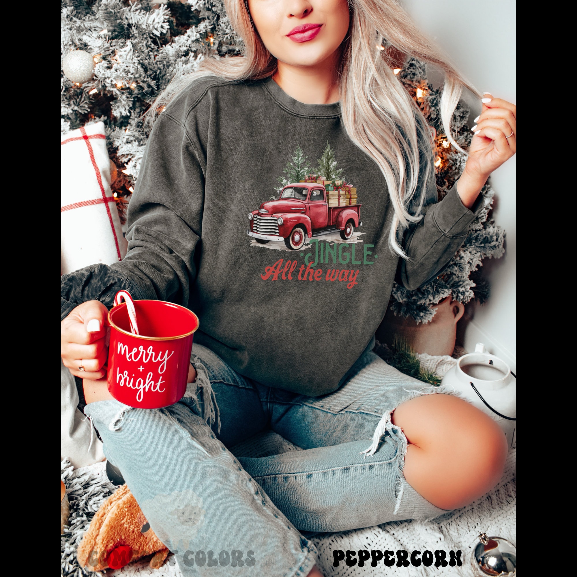 Comfort colors Red Truck Christmas sweatshirt, Tree Farm Christmas sweatshirt, Jingle all the way