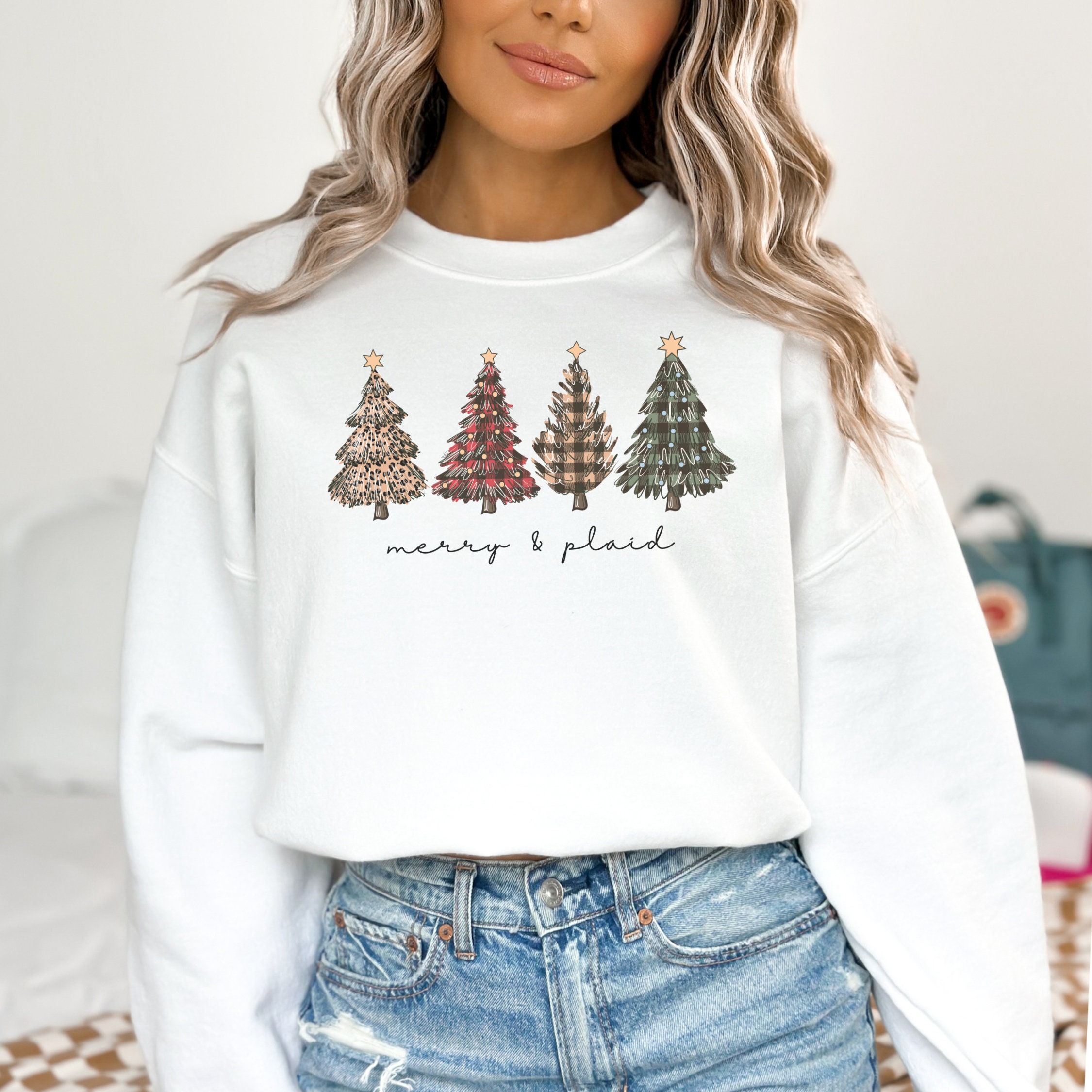 Plaid Christmas tree sweatshirt Plaid tree holiday Christmas sweatshirt Plaid xmas